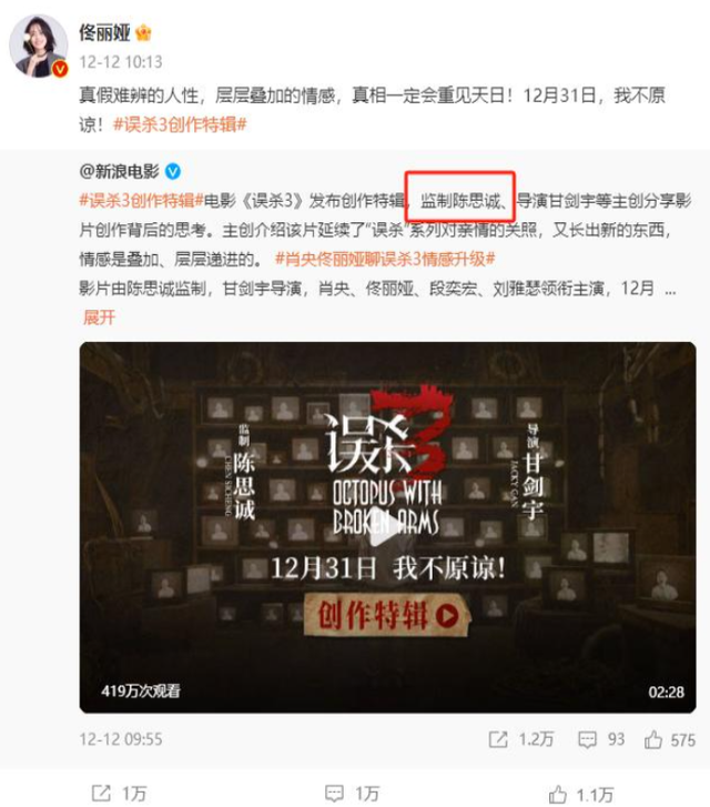 并且说完这句话后她还转头看向坐在一旁的陈思诚。