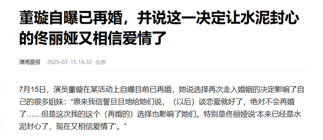 此外她还透露在自己的影响下,原本水泥封心的佟丽娅,却再次相信了爱情。